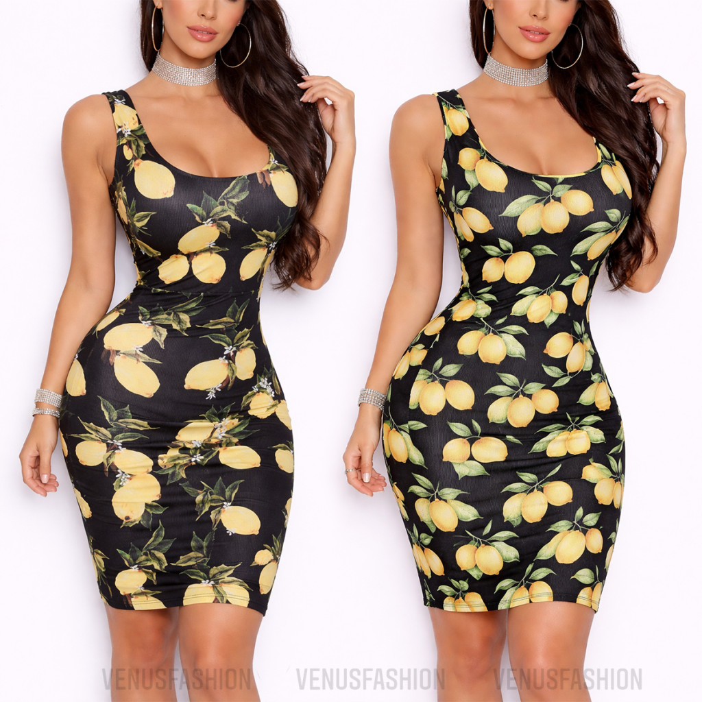 Citrom mintás oldalt sliccelt ruha